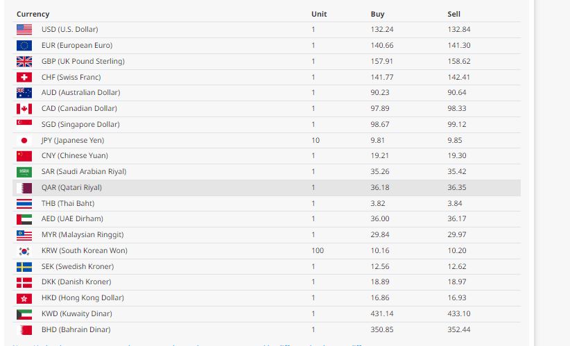 आज डलरको खरिद दर १३२ रूपैयाँ २४ पैसा र बिक्री दर १३२ रूपैयाँ ८४ पैसा रहेको छ । युरो एकको खरिद दर १४० रूपैयाँ ६६ पैसा र बिक्री दर १४१ रूपैयाँ ३० पैसा रहेको छ ।