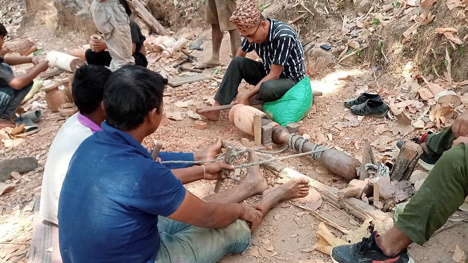 बङ्गलाचुली–३ गुमानसिंह विश्वकर्माका बाजेले घरायसी प्रयोजनका लागि काठका सामग्री बनाउँथे । उनले आफ्नै हातले ठेकी, कोर्रे, बाँटा, कोशी, हर्पे, गर्रे बनाएर प्रयोग गर्थे । गाउँघरमा पनि गएर बनाउँथे । काठका सामान बनाउने अनि गाउँघरका लागि चाहिएको अवस्थामा त्यहीँ गएर बनाउने गर्थे । बाजेको निधनपछि अहिले गुमानसिंहले बाजे पुस्ताबाट सिकेको सीपलाई निरन्तरता दिँदैछन् । ‘बाजेले गरेको देखेको थिएँ, मेरो बुबाले पनि काठबाट विभिन्न सामान बनाउनु हुन्थ्यो’, उनले भने, ‘पछिल्लो समय बजारमा पाइने प्लास्टिक, आल्मुनियमको भाँडाले गाउँले सामानले स्थान पाउन छाड्दै गयो । सस्तो अनि प्रयोग गर्न छरितो हुने भन्दै उपभोक्ताले बजारका भाँडा किन्न थालेपछि काठका सामानको महत्व कम हुँदै गएको थियो ।’