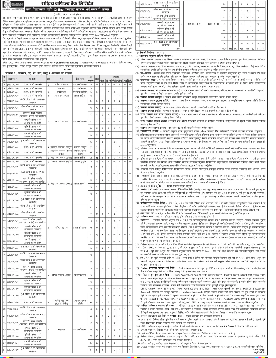 बैंकले रिक्त रहेका विभिन्न तह र पदमा खुला तथा समावेशी प्रतियोगितात्मक परीक्षाबाट पदपूर्तिका लागि कर्मचारी माग गरेको छ । वरिष्ठ प्रबन्धक, प्रबन्धक, उप प्रबन्धक, सहायक प्रबन्धक, वरिष्ठ सहायक, सहायकलगायतका विभिन्न पदमा दरखास्त आह्वान गरेको हो ।