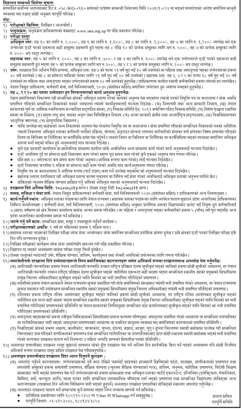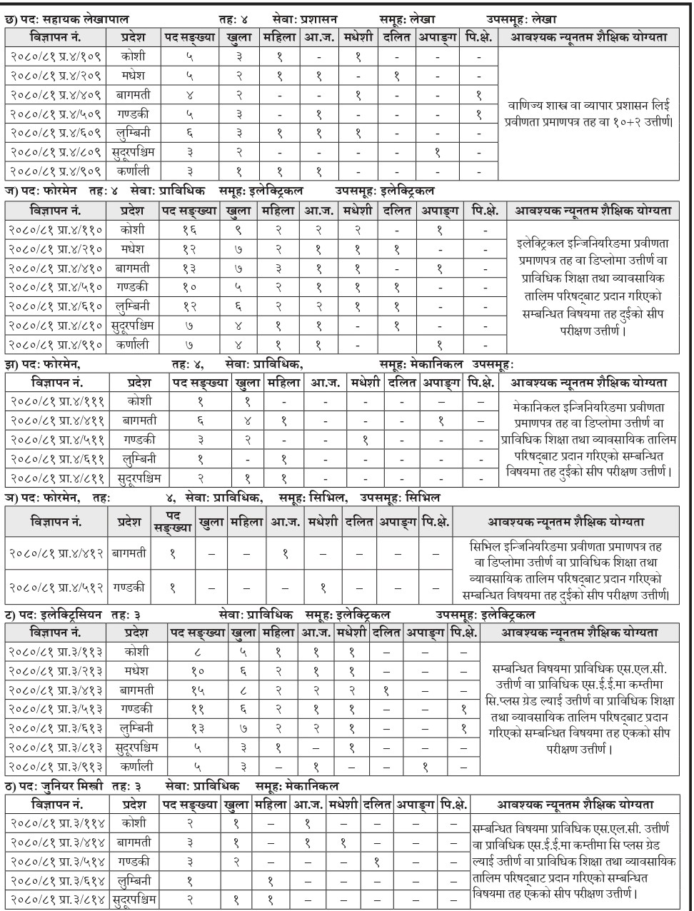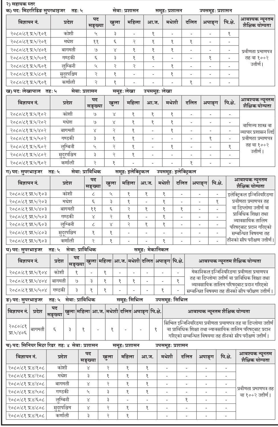 प्राधिकरणले दसौँ तह अन्तर्गत प्रशासनतर्फ एक जना सहनिर्देशक, प्राविधिकतर्फ एक जना प्रबन्धक मागेको छ । इच्छुक र योग्यता पुगेका व्यक्तिहरूले मंसिर १४ गतेसम्म दरखास्त दिइसक्नुपर्नेछ ।