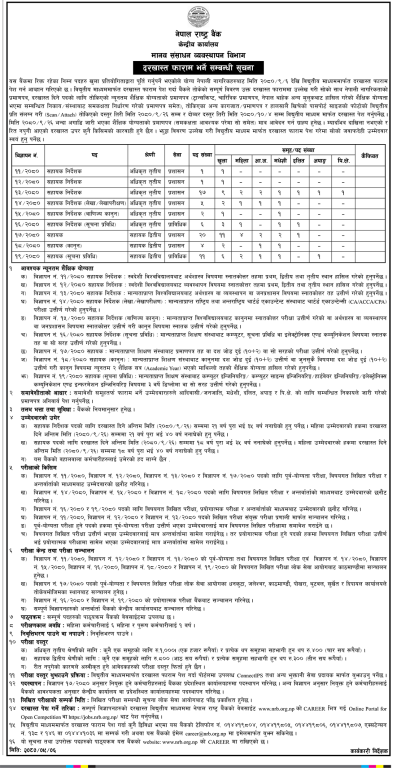 नेपाल राष्ट्र बैङ्कले रिक्त विभिन्न पदपूर्तिका लागि आवेदन माग गरेको छ । रिक्त रहेका पदहरू खुला प्रतियोगिताद्वारा पूर्ति गर्नुपर्ने भएकाले योग्य नेपाली नागरिकले आवेदन दिन सक्ने राष्ट्र बैङ्कले जनाएको छ ।