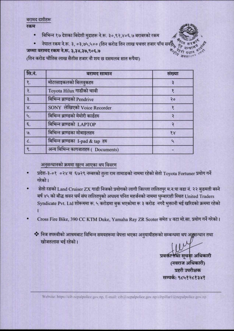 उक्त गाडी किन्नका लागि ललितपुरको बुङ्मती बस्ने पनित महर्जनको नाममा धुम्बाराहीस्थित एक शोरुममा पाँच करोड रुपैयाँको ‘बुक’ भएको पाइएको प्रहरीले जनाएको छ । पाँच करोडमध्ये तीन करोड रुपैयाँ बुझाइसकिएको पाइएको प्रहरी प्रवक्ता तथा सूचना अधिकारी प्रहरी उपरीक्षक नवराज अधिकारीले बुधवार आयोजित पत्रकार सम्मेलनमा जानकारी दिए ।