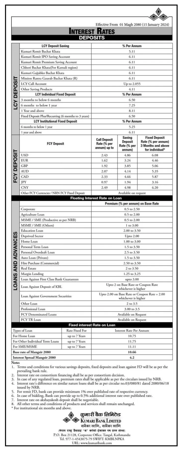 कुमारी बैंकले माघ महिनामा ब्याजदर घटाउने भएको छ । बैंकले माघ १ गतेदेखि लागू हुनेगरी सार्वजनिक गरेको ब्याजदर घटाएको छ ।