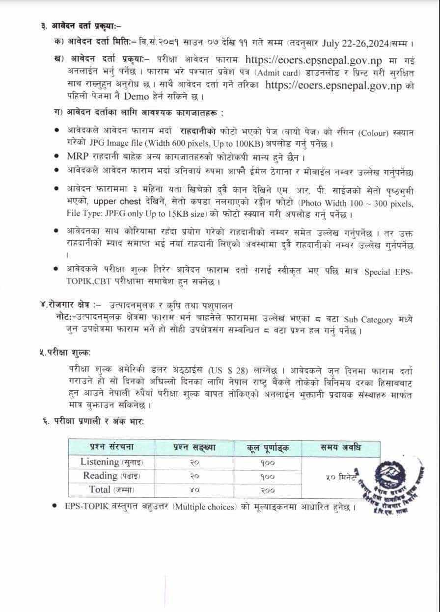 परीक्षा दिनेले साउन ७ गतेदेखि ११ गतेसम्म फाराम भर्नुपर्ने छ । परीक्षाको नतिजा प्रकाशन असोज २१ गते हुनेछ ।