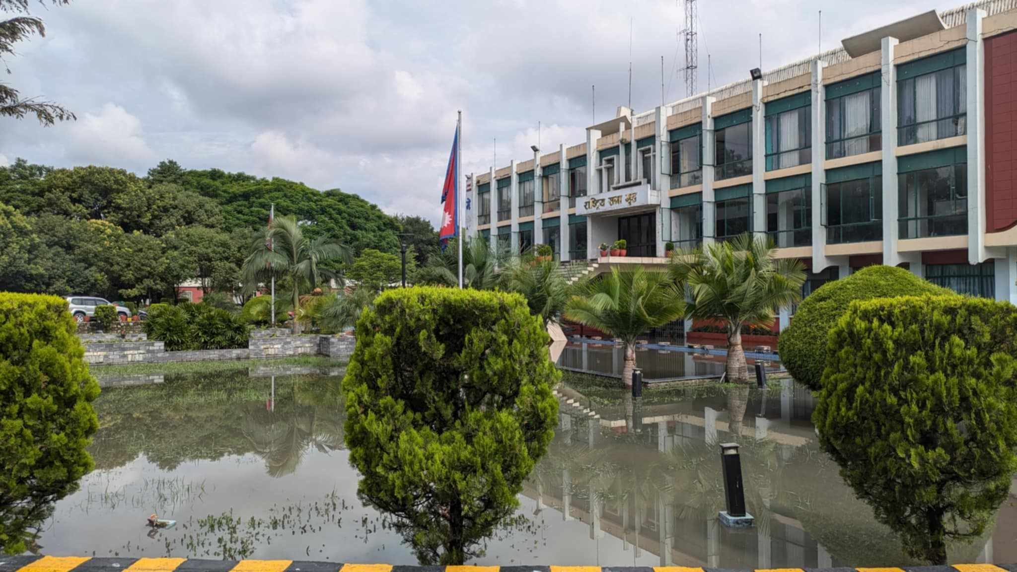 बिहीबार राति भारी वर्षाका कारण जमेको पानी निकास नहुँदा सभागृह परिसर जलमग्न भएको हो। सभागृहमा भुइँतलामा रहेको मेट्रो एफएमको कार्यालयभित्रै पानी पसेको छ।