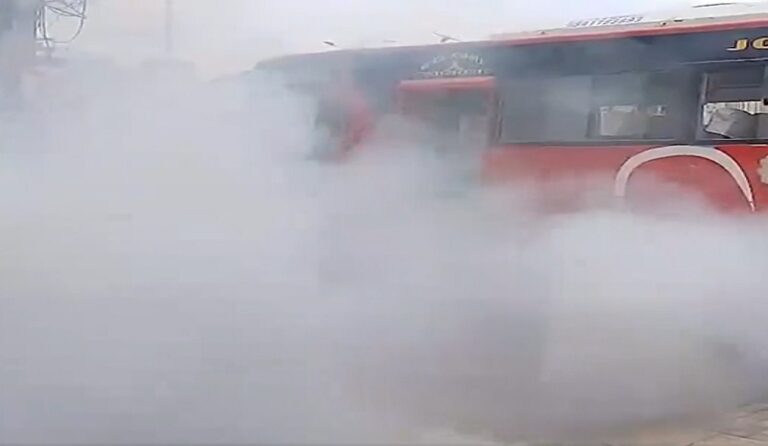 नयाँबानेश्वरमा गुडिरहेको एक बसबाट धुँवाको मुस्लो निस्किएपछि…