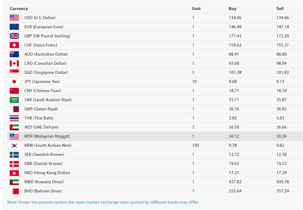 साउदी रियाल एकको खरिद दर ३५.७१ रुपैयाँ रहेको छ भने बिक्री दर ३५.८७ रुपैयाँ रहेको छ । मलेसियन रिंगिट एकको खरिद दर ३०.१२ रुपैयाँ रहेको छ भने बिक्री दर ३०.२६ रुपैयाँ रहेको छ ।