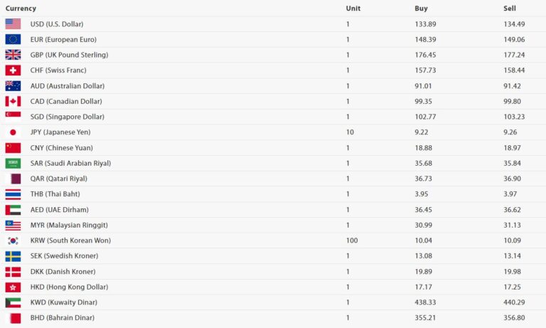 आज भदौ १६ गते आइबार। नेपाल राष्ट्र बैंकका अनुसार आज अमेरिकी डलर एकको खरिद दर १३३.८९ रुपैयाँ रहेको छ भने बिक्री दर १३४.४९ रुपैयाँ रहेको छ । त्यस्तै युरोपियन युरो एकको खरिद दर १४८.३९ रुपैयाँ रहेको छ भने बिक्री दर १४९.०६ रुपैयाँ रहेको छ ।