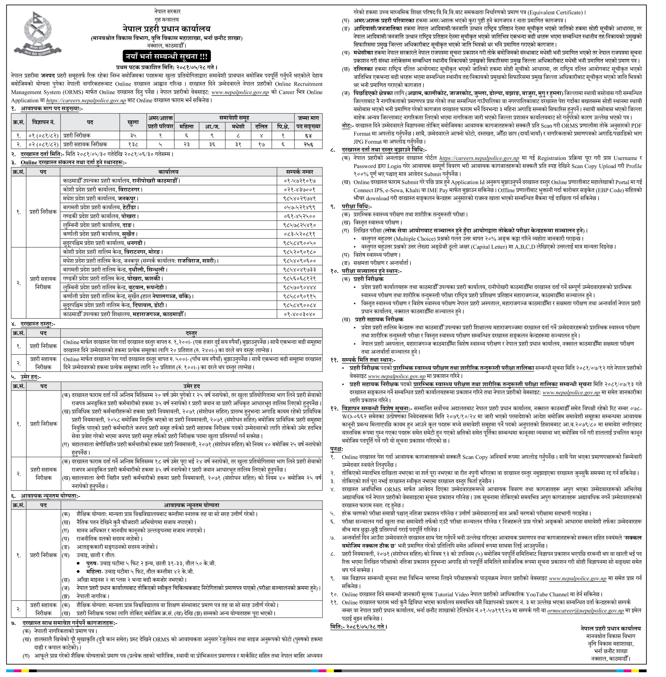 प्रहरी प्रधान कार्यालय मानवस्रोत विभाग, वृत्ति विकास महाशाखा, भर्ना छनौट शाखाले भर्नाका लागि दर्खास्त आह्वान गरेको हो। समावेशी आधारमा मागिएको आवेदनमा ६४ जन प्रहरी निरीक्षक २५६ जना सहायक निरीक्षकको माग गरिएको छ।