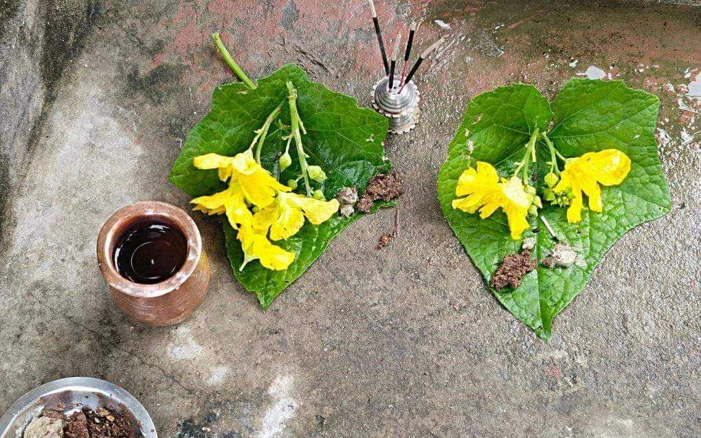 वर्तालु महिलाले पहिलो दिन स्थानीय जलासयमा गएर स्नान गरी घिरौँलाको पातमा पिना ( खैर) र माटो चढाउने गर्छन् ।