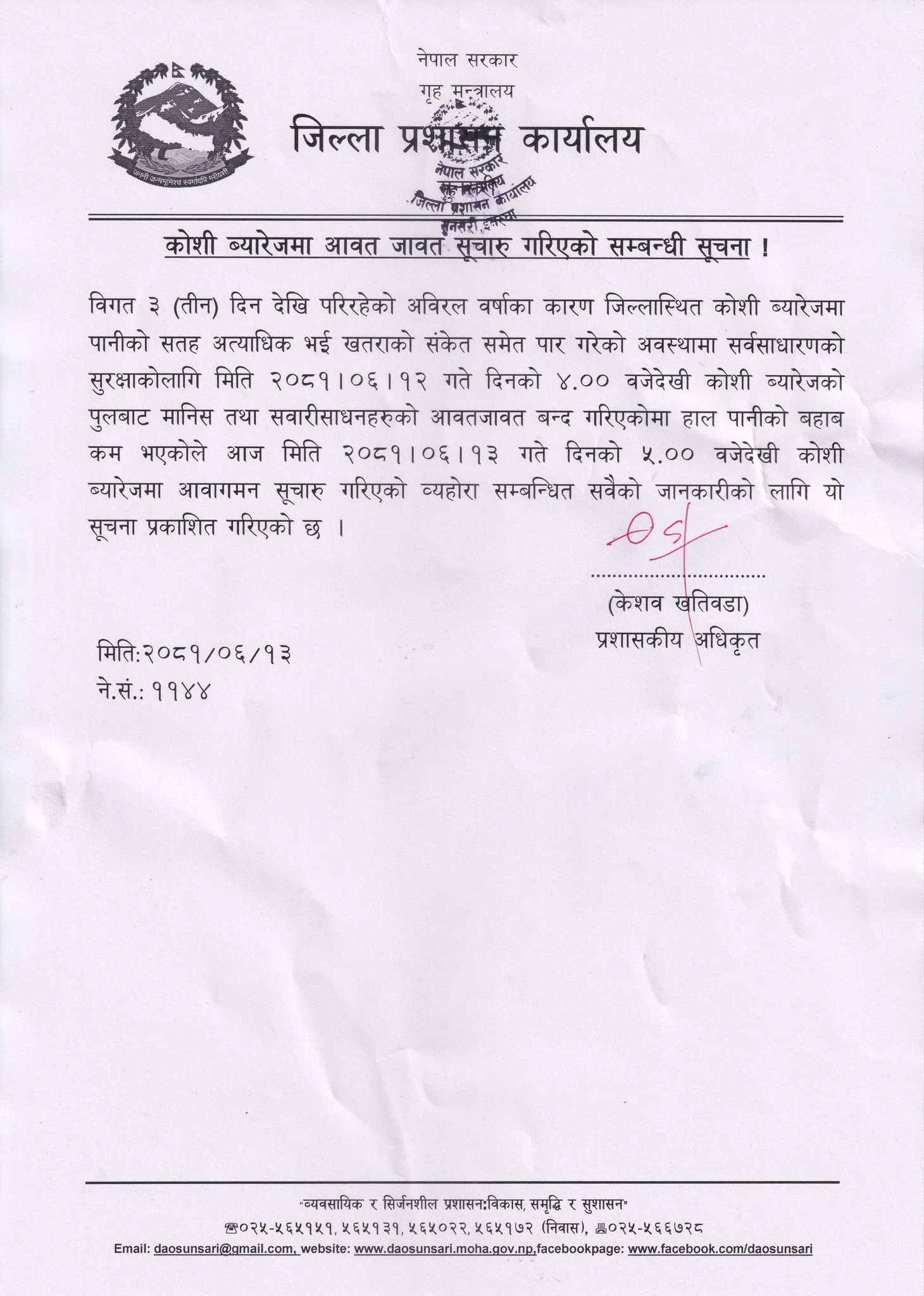 होमपेज > आज साँझदेखि सप्तकोशी ब्यारेजबाट आवत–जावत प्रतिबन्ध हटाईयो
