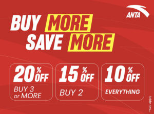 बाइ मोर, सेभ मोर अफर अन्तर्गत ग्राहकले ५० प्रतिशतसम्मको छुट प्राप्त गर्न सक्नेछन् । साथै हरेक खरिदमा निश्चित क्यासब्याक भौचर पनि पाउनेछन्, जसले यस अफरलाई अझै आकर्षक बनाउने ब्रान्डको विश्वास छ । एन्टा ब्रान्डका खेलकुद जुत्ता, एथ्लेटिक कपडा र एक्सेसरीहरूमा ५० प्रतिशतसम्म छुट उपलब्ध हुनेछ।