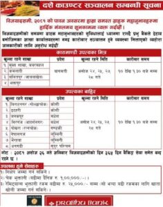 बैंकले एक सूचना जारी गर्दै दशैँ बिदामा पनि केही निश्चित शाखा सञ्चालन गर्ने जानकारी दिएको हो । ग्राहकहरूको सुविधालाई ध्यानमा राख्दै निश्चित शाखा कार्यालयहरुमा १० बजेदेखि १ः३० बजेसम्म कारोबार सञ्चालन हुने जानकारी दिएको छ । असोज २६ गते शनिबार विजयादशमीको दिन बैंकिङ सेवा समेत बन्द रहने बैंकले जनाएको छ ।