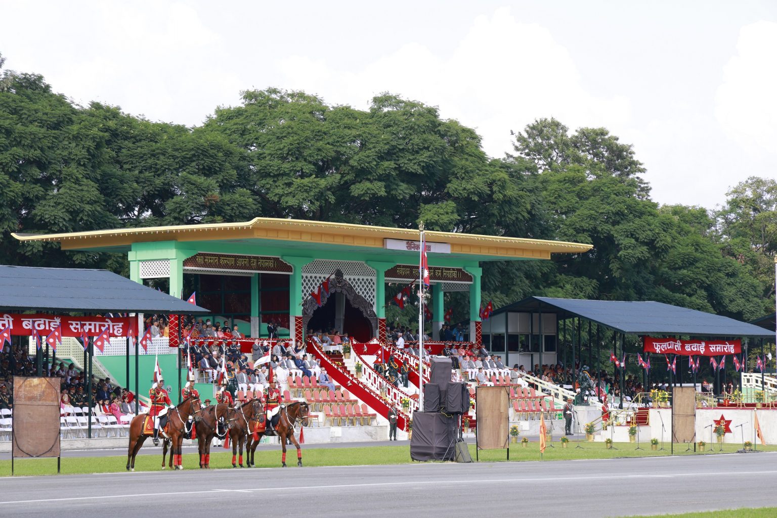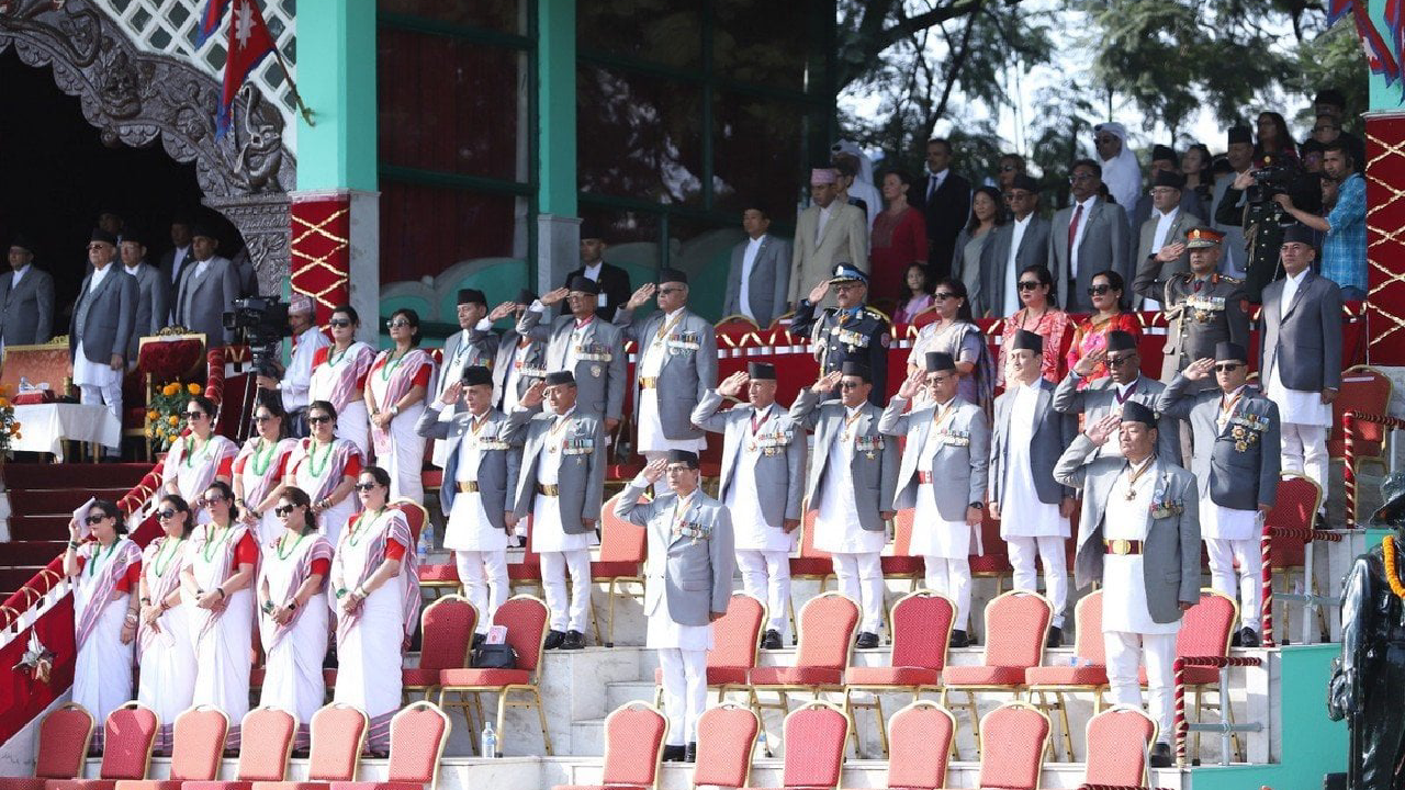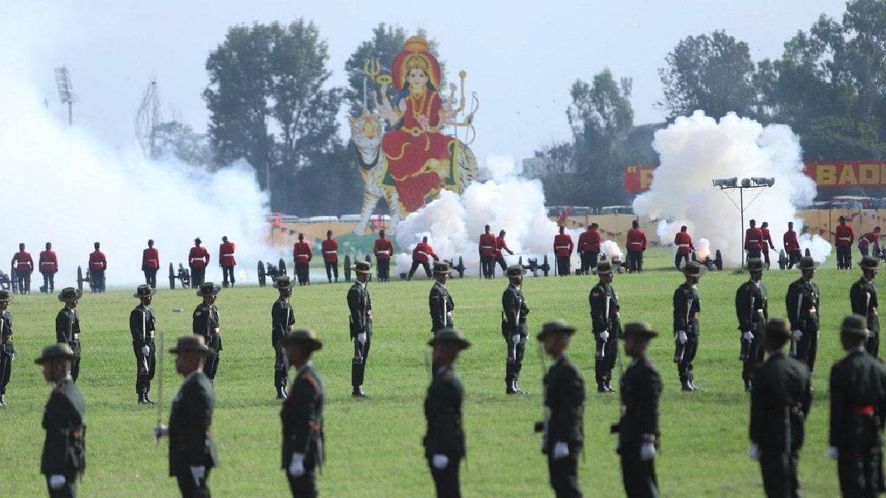 राष्ट्रपति रामचन्द्र पौडेलको प्रमुख आतिथ्यमा सैनिक मञ्च टुँडिखेलमा अपराह्न ‘फूलपाती बढाइँ समारोह–२०८१’ सम्पन्न गरिएको छ। समारोहमा नेपाली सेनाका परमाधिपति राष्ट्रपति पौडेलको सम्मानमा नेपाली सेनाले सलामी अर्पण गरेको थियो।