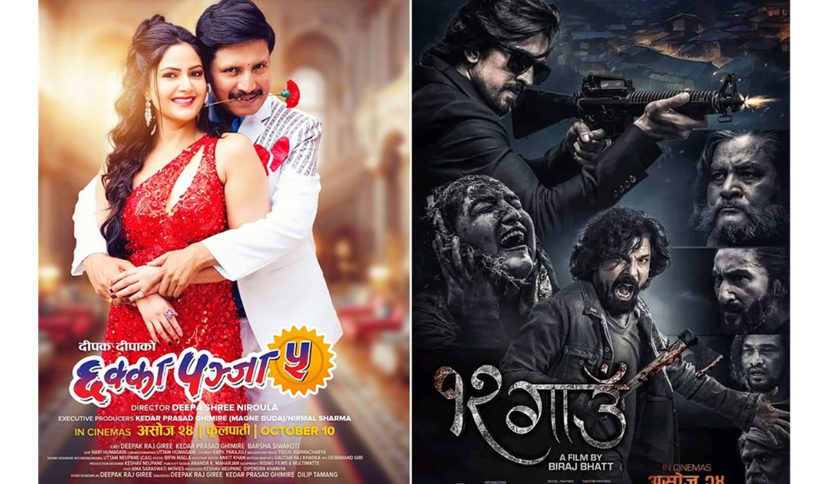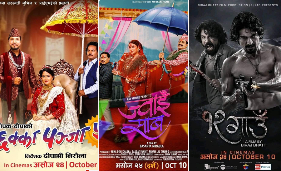 दशैंको फूलपातीको अवसरमा तीन नेपाली चलचित्र ‘छक्कापञ्जा–५’, ‘१२ गाउँ’ र ‘ज्वाइँसाब’ एकसाथ प्रदर्शनमा आए । यी चलचित्र प्रदर्शन भएको १० दिन पुग्दा तीनै चलचित्रले राम्रो व्यापार गरेको देखिएको छ ।