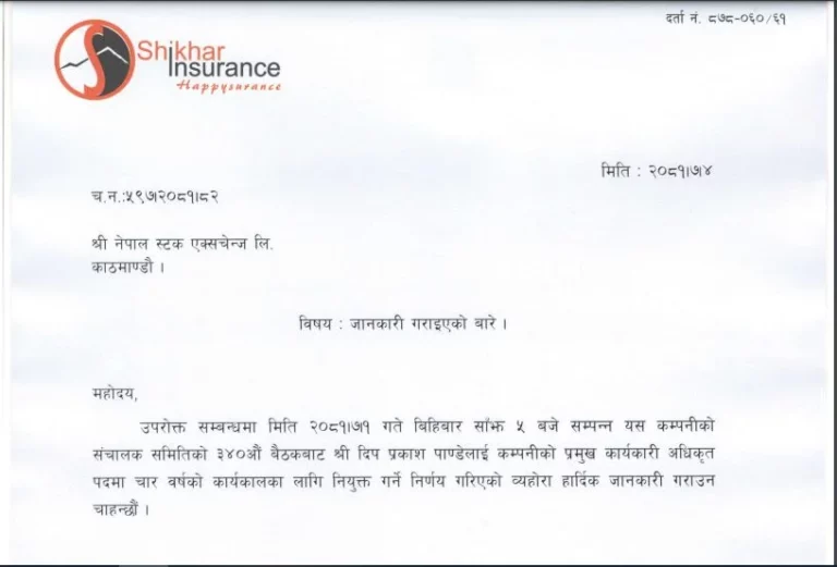शिखर इन्स्योरेन्सको सीईओमा दीपप्रकाश पाण्डेले निरन्तरता पाएका छन्।
