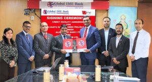 ग्लोबल आइएमई बैंक लिमिटेड र प्राइम पावर लिमिटेडबीच सौर्य विद्युत परियोजनामा कर्जा लगानी गर्ने सम्बन्धी समझदारी पत्रमा हस्ताक्षर भएको छ। उक्त समझदारी पत्रमा बैंकका प्रमुख कार्यकारी अधिकृत सुरेन्द्रराज रेग्मी र प्राइम पावर लिमिटेडका अध्यक्ष आशीष गर्गले संयुक्त रुपमा हस्ताक्षर गरेका हुन्।