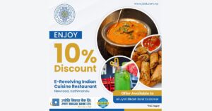 ज्योति विकास बैंक लिमिटेडका ग्राहकले काठमाडौंस्थित ई-रिभल्भिङ इन्डियन कजिन रेस्टूराँमा १० प्रतिशतसम्म छुट पाउने भएका छन् ।