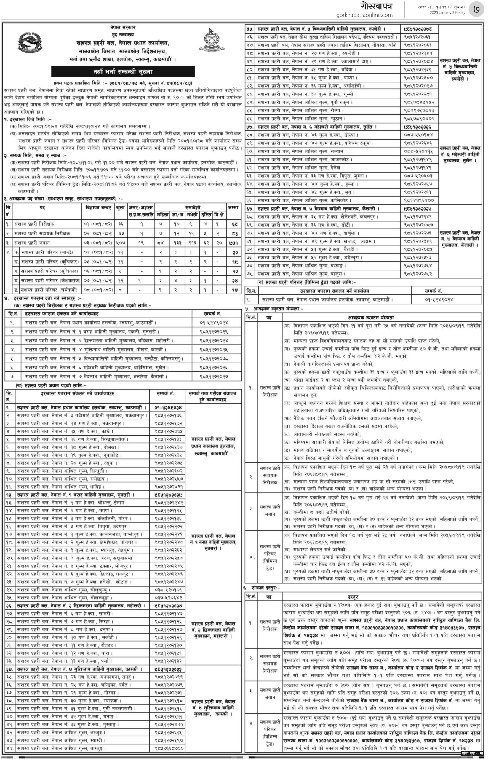 सशस्त्र प्रहरी वल (एपीएफ) ले ठूलो संख्यामा जनशक्ति माग गरेको छ।