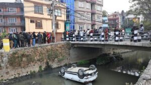 काठमाडौँको धोबिखोलामा खस्यो कार