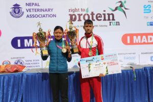 उनले निर्धारित दूरी १५ मिनेट ४४ सेकेण्डमा पूरा गरिन्। नेपाल भेटेरिनरी संघको आयोजनामा भएको राइट टु प्रोटिन रनको विजेता सन्तोषी र राजनले समान १ लाख ५० हजार रुपैयाँ प्राप्त गरेका छन्।