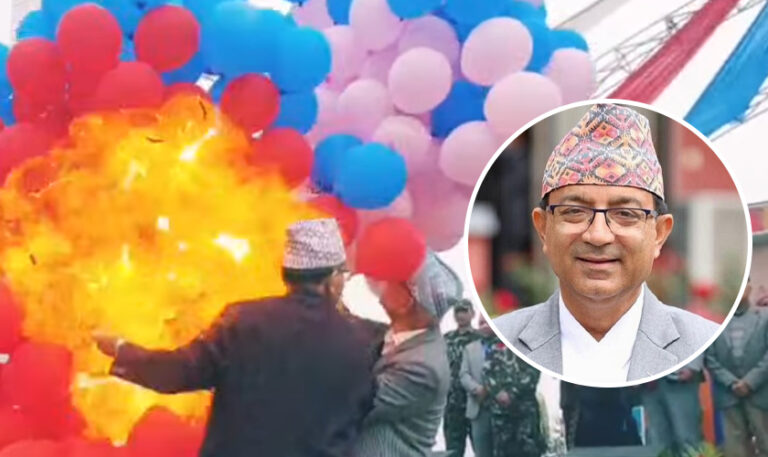 पोखरा भ्रमण वर्षको उद्घाटनका लागि तयार गरिएको बेलुन पड्किएर पोखराका मेयर धनराज आचार्य घाइते भएका छन्। बिज्ञापन भ्रमण वर्ष लेखिएको ब्यानर सहितको बेलुन उडाउने क्रममा पड्किएको हो। उनको उपचारका लागि अस्पताल लगिएको छ । चोट सामान्य रहेको बताइएको छ। सोही बेलुन पड्किँदा उपप्रधान तथा अर्थमन्त्री विष्णु पौडेल भागेर मञ्चतर्फ पुगेका थिए। बिज्ञापन अर्थमन्त्री पौडेल पनि … Continue reading बेलुन पड्किएर पोखराका मेयर आचार्य घाइते