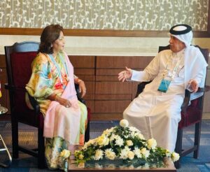 परराष्ट्रमन्त्री आरजु राणा देउवाले कतारका विदेश राज्यमन्त्री सुल्तान बिन साद बिन सुल्तान अल मुराइखीसँग ओमनको राजधानी मस्कटमा शिष्टाचार गरेका छन्। आठौं हिन्द महासागरीय सम्मेलनमा सहभागिताका लागि ओमनको मस्कटमा रहेका उनीहरूबीच आइतबार साइडलाइन भेट भएको हो।