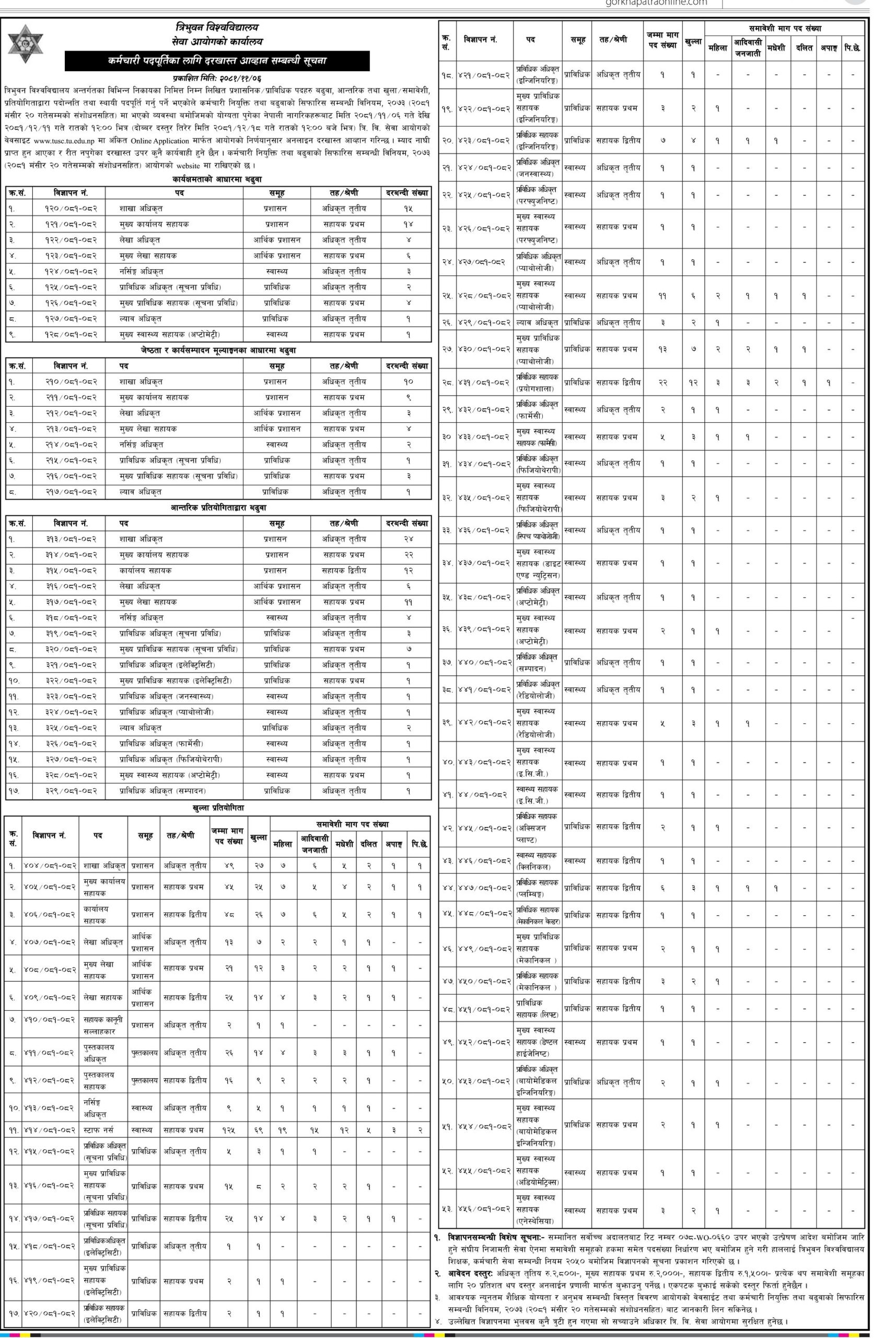 त्रिभुवन विश्वविद्यालय अन्तर्गतको सेवा आयोगको कार्यालयले विभिन्न पदका लागि दरखास्त आह्वान गरेको छ।