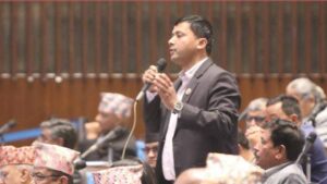 ‘पछिल्लो केहीदिनदेखि पूर्वराजा ज्ञानेन्द्रको नाम र उक्साहटबाट समाजमा संविधानविपरीतका कार्यहरू भइरहेका छन्’, उनले संसद्मार्फत सरकारको ध्यानाकर्षण गराउँदै भने, ‘पञ्चायतकालीन गान गाउने,मुलुकको अहिलेको राष्ट्रिय गानको अवमूल्यन गर्ने किसिमका संविधानविपरीत काम भइरहेका छन्।’