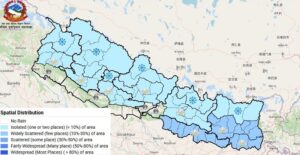 आज दैलेखमा सबैभन्दा धेरै १५ मिलिमिटर वर्षा भएको महाशाखाका वरिष्ठ मौसमविद् मीनकुमार अर्यालले जानकारी दिनुभयो। पश्चिमी भू–भागको तुलनामा पूर्वि पहाडी भू–भागमा कम वर्षा भएको छ।