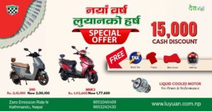 नेपालको लोकप्रिय इलेक्ट्रिक स्कुटर ब्रान्ड लुयान नेपालले नयाँ वर्ष २०८२ को अवसरमा ग्राहकहरूका लागि विशेष अफर सार्वजनिक गरेको छ ।