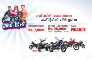 सीजी मोटर्सले ‘नयाँ वर्ष नयाँ हिरो’ नामक नयाँ वर्ष अफर ल्याएको छ । हिरो मोटरसाइकल तथा स्कुटरको नेपालका लागि आधिकारिक वितरक यो कम्पनीले नयाँ वर्षलक्षित अफर ल्याएको हो ।