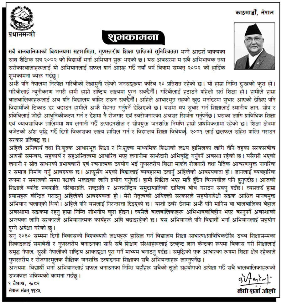 -हेर्नुहोस् प्रधानमन्त्रीको शुभकामना सन्देश:
