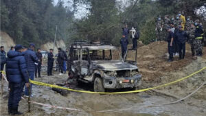 ‘बिजुलीको पोलबाट लत्रिएको तारले आगलागी भएको अनुमान छ । घटनास्थलमा चार जनाको मृत्यु भएको छ । अरू दुई जना घाइतेलाई उद्धार गरेर उपचारका लागि अस्पताल पठाइएको छ । घटनास्थल फुङ्लिङ नगरपालिका–१० तेर्सैमा पर्छ,’ लिम्बूले भने । लिम्बू अहिले घटनास्थलमै छन् । उनका अनुसार घटनामा परेर जिप चालक फुङलिङ घर भएका गाडी चालक ४५ वर्षीय दुर्गा भट्टराईसहित चार जनाको घटनास्थलमै मृत्यु भएको हो ।