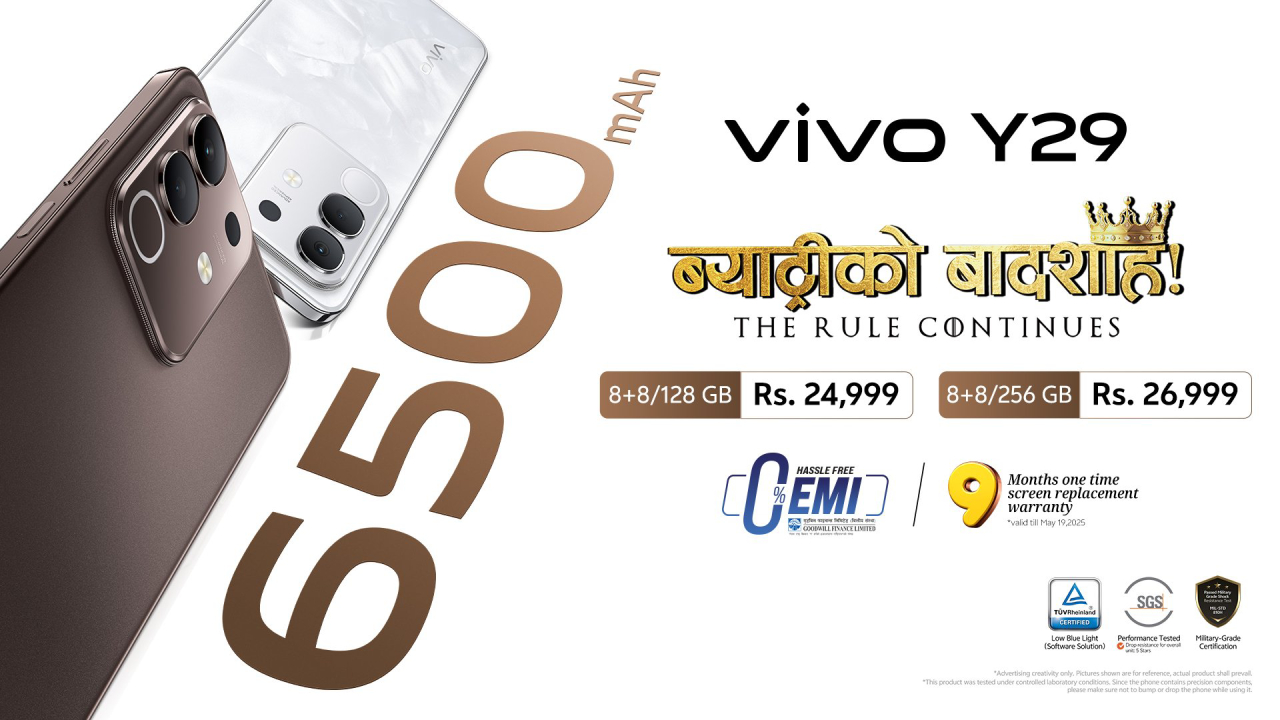 भो वाई–२९ अहिले नेपालभरिका सबै रिटेल स्टोरहरूमा र दराज अनलाइनमा उपलब्ध छ । यसको प्रारम्भिक मूल्य रु. २४,९९९ राखिएको छ । सशक्त ब्याट्री, मजबुत बनावट र स्मार्ट फिचरहरूसहितको भिभो वाई–२९ एक यस्तो स्मार्टफोन हो, जसले प्रदर्शन, सौन्दर्य र दीर्घकालीन प्रयोगको आदर्श संयोजन प्रदान गर्छ।