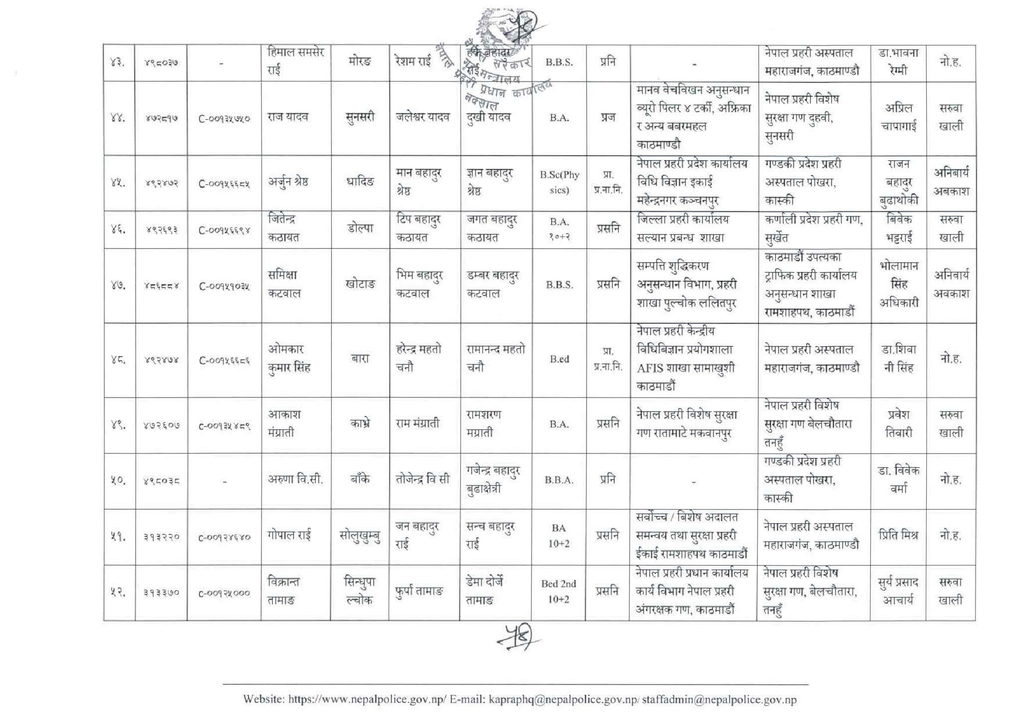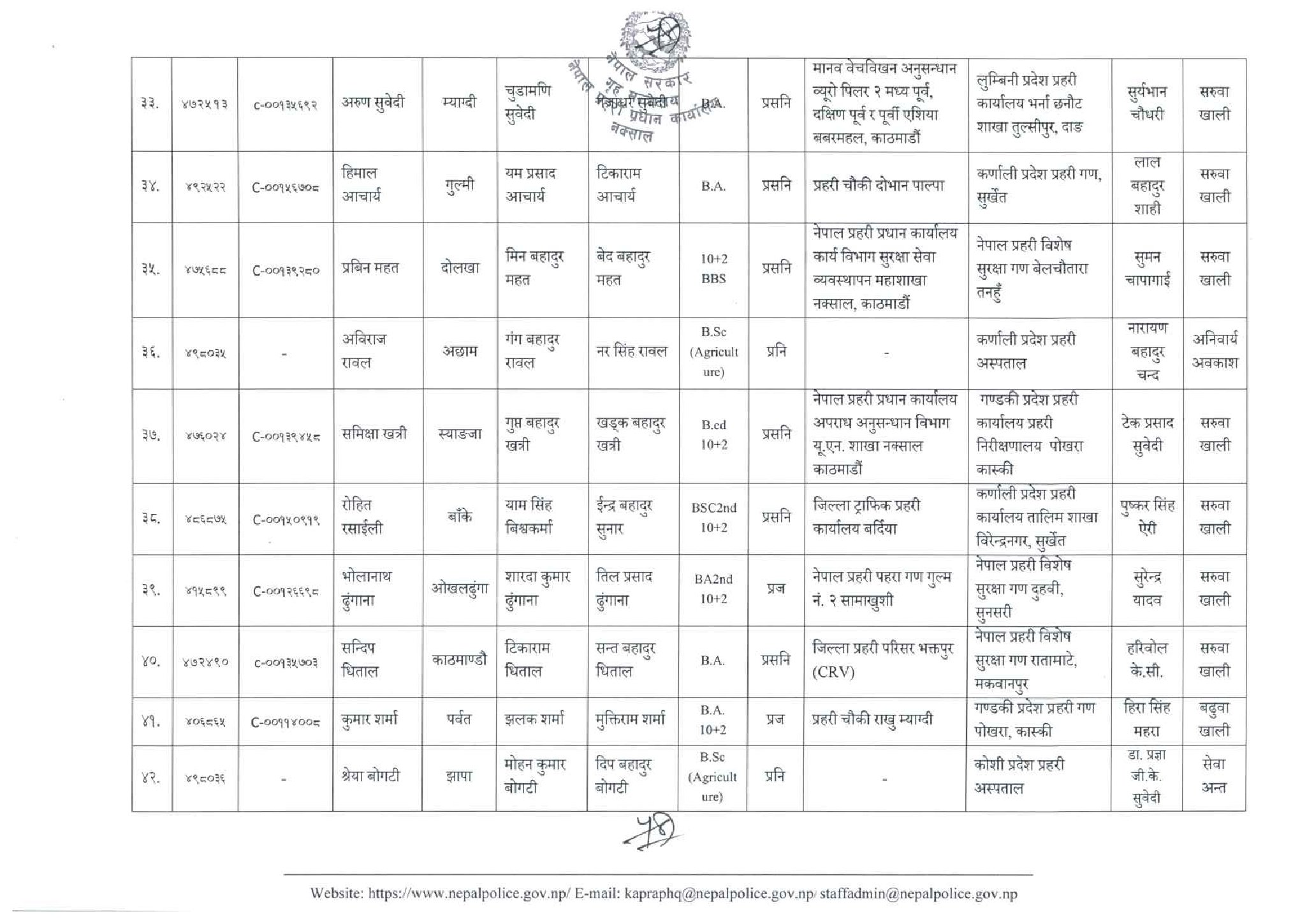 ७७ जना नयाँ इन्सपेक्टरको पदस्थापन, को कहाँ? (हेर्नुहोस् सूचना)