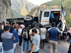 मुग्लिन-नारायणगढ सडक खण्डमा ट्रक पल्टिँदा पूर्णरुपमा बन्द