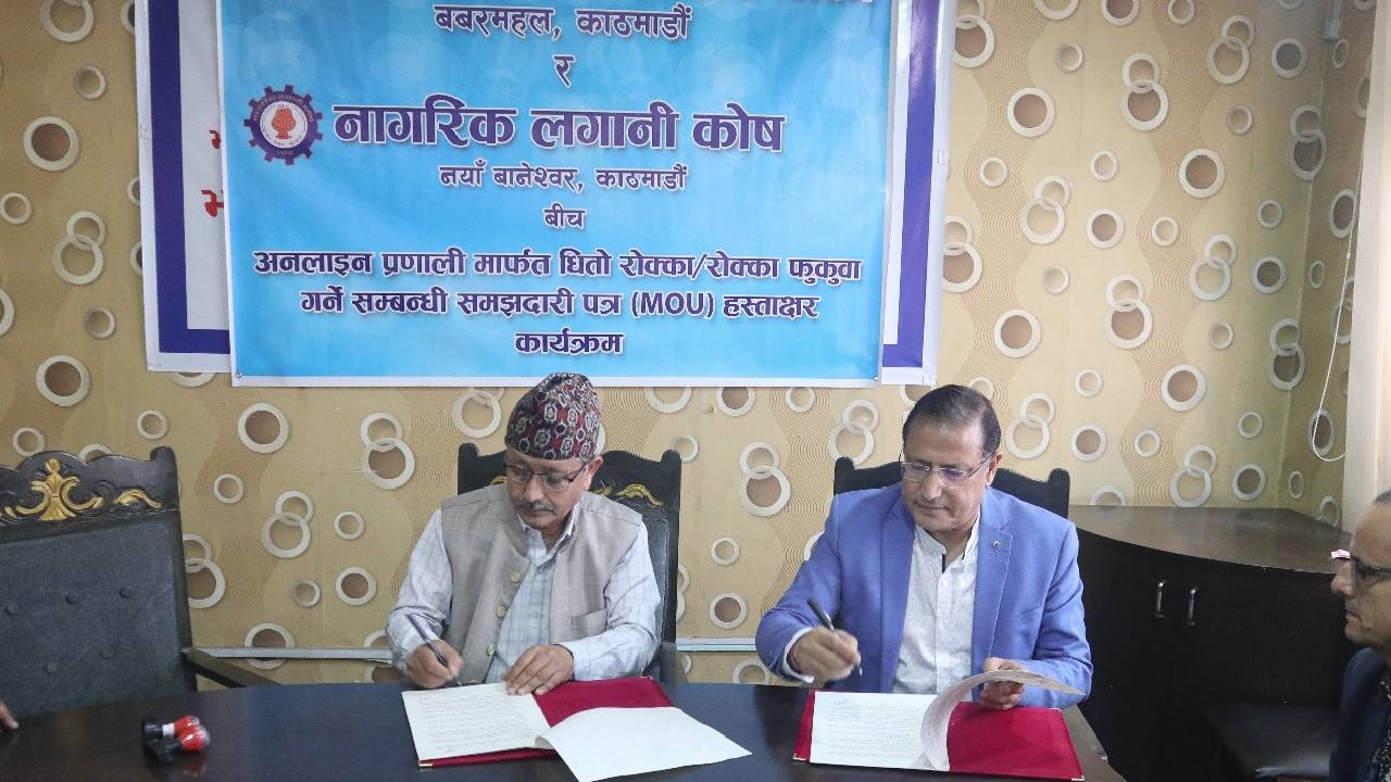 नागरिक लगानी कोष र भूमि व्यवस्थापन तथा अभिलेख विभागबीच अनलाइन प्रणालीमार्फत धितो रोक्कारफुकुवा गर्ने सम्बन्धमा सम्झौता भएको छ ।