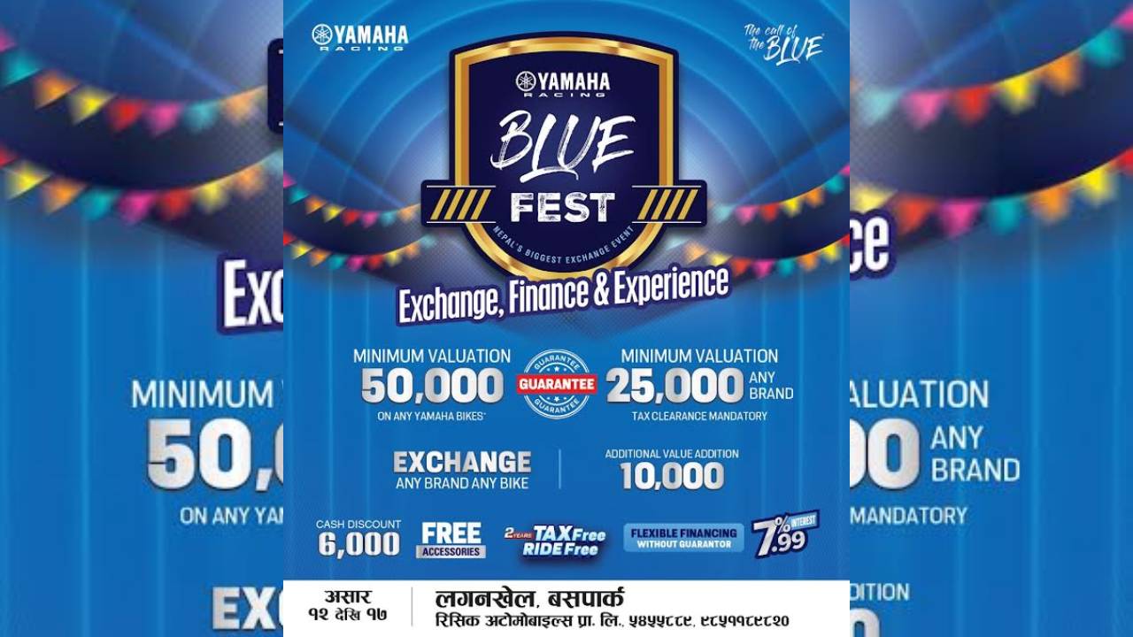 असार १२ गतेदेखि १७ गतेसम्म चल्ने रोमाञ्चक कार्यक्रममा कुनै पनि ब्रान्डका कुनै पनि बाइकलाई उत्कृष्ट मूल्याङ्कन र फाइदाहरूका साथ साट्ने अवसर प्राप्त हुनेछ। यामाहा ब्लू फेस्टमा निम्न विशेष अफरहरू समावेश छन्:
