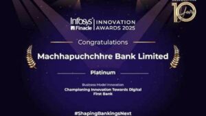 माछापुच्छ्रे बैंक लिमिटेड इन्फोसिस फिनाकल इनोभेसन अवार्ड २०२५ मा विजनेस मोडल इनोभेसन विधा अन्तर्गत प्लाटिनम अवार्डबाट सम्मानित भएको छ ।