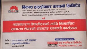 विकास हाइड्रोपावर कम्पनीको आइपीओ आज असार २९ गते बाँडफाँट गरिएको छ।