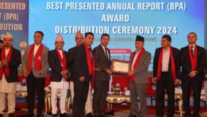 इन्स्टिच्युट अफ चार्टर्ड अकाउण्टेण्ट अफ नेपाल (आइक्यान) ले शुक्रबार होटल र्‍याडिसनमा आयोजित एक कार्यक्रमका बीच कम्पनीलाई ‘सर्टिफिकेट अफ मेरिट’ सम्मान प्रदान गरेको हो। समारोहका कम्पनीका प्रमुख कार्यकारी अधिकृत पवन कुमार खड्का र प्रमुख वित्त अधिकृत जगत बोहराले संयुक्तरूपमा नेशनल वेष्ट अवार्ड प्रेजेण्टेट एनुअल रिपोर्ट अवार्ड सम्मान ग्रहण गरे।