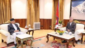 शनिबार अपराह्न शीतलनिवास पुगेर प्रधानमन्त्री ओलीले राष्ट्रपति पौडेलसँग भेटवार्ता गरेका हुन्। भेटमा समसामयिक विषयवस्तुमा छलफल भएको राष्ट्रपति पौडेलको सचिवालयले जनाएको छ।