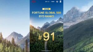 बीवाईडी २०२५ फर्च्युन ग्लोबलको सूचीको ९१औं स्थानमा पर्न सफल भएको छ। सूचीमा रहेका कुल ५०० कम्पनीमध्ये चिनियाँ अटोमेकर बीवाईडी
