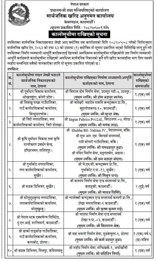 कार्यालयले आज सूचना जारी गर्दै विभिन्न निकायबाट कालो सूचीमा राख्नको लागि लेखि पठाएअनुसार ती निर्माण कम्पनीलाई कालो सूचीमा राखिएको जानकारी दिएको हो।