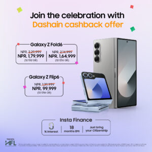 यस दशैंमा, सामसङ नेपालले आफ्ना फोल्डेबल फोनहरू अब पहिलेको भन्दा धेरै सुलभसँग उपलब्ध गराइरहेको छ। अब तपाईंले आफ्ना प्रियजनहरूलाई नयाँ ग्यालेक्सी जेड फोल्ड६ वा ग्यालेक्सी जेड फ्लिप६ जस्ता फोनहरू विशेष र कम मूल्यमा उपहार दिएर यो पर्व मनाउन सक्नुहुन्छ।