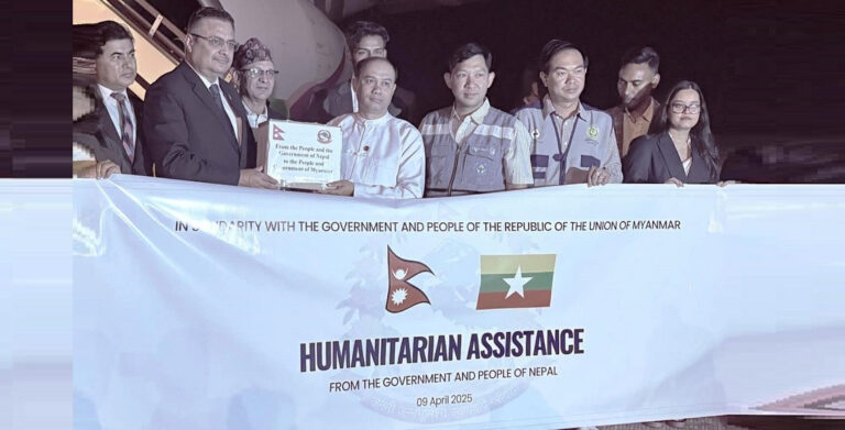 नेपालले म्यानमार सरकारलाई २७ टन बराबरको राहत सामग्री उपलब्ध गराएको छ । भूकम्पबाट प्रभावित म्यानमारका नागरिकलाई सहयोगस्वरुप उक्त राहत सामग्री उपलब्ध गराइएको हो । नाय…