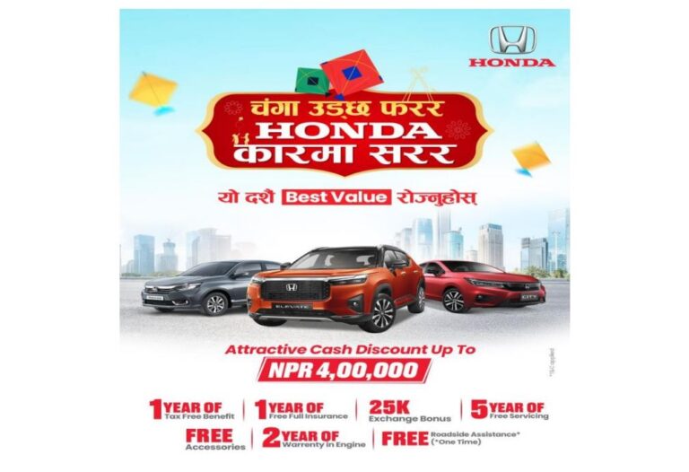 नेपालका लागि होन्डा कारको आधिकारिक बिक्रेता स्याकार ट्रेडिङ्ग कम्पनी प्रा. लि.ले हिन्दूहरूको महान् चाड दशैंको अवसर पारेर आफ्ना ग्राहकहरूका लागि आकर्षक योजना “चंगा उड्छ फरर,…