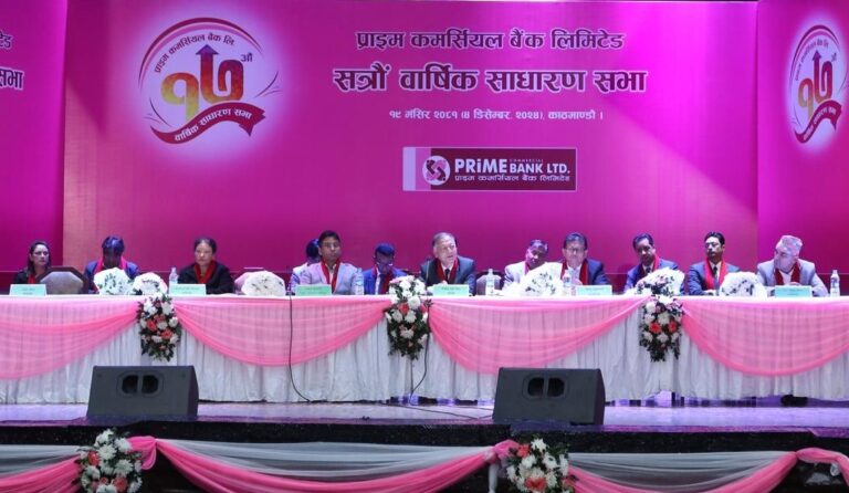 प्राइम कमर्सियल बैंक लिमिटेडको सत्रौँ वार्षिक साधारण सभा सम्पन्न २०८१ मंसिर २० बिहीबार • बिजनेस न्यूज नेपाल