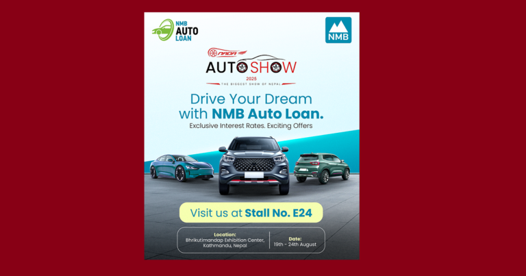 एनएमबि बैंकको नयाँ अटो लोन योजनाः अब ७.१३ प्रतिशत ब्याजदरमै गाडी किन्न पाइने २०८२ भाद्र ३ मंगलवार • बिजनेस न्यूज नेपाल